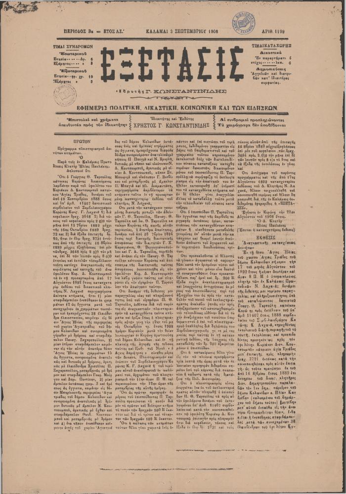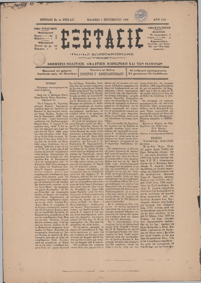 Η ΕΞΕΤΑΣΙΣ φύλλο 05/09/1908