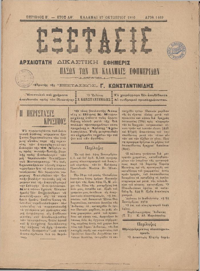 Η ΕΞΕΤΑΣΙΣ φύλλο 27/10/1910