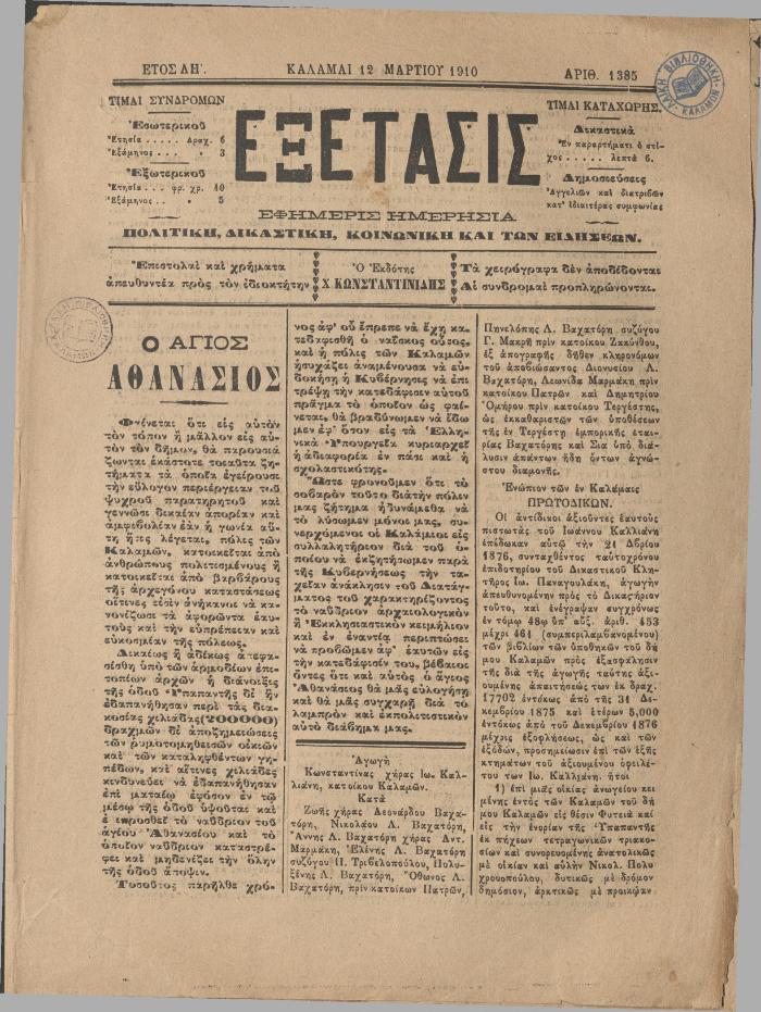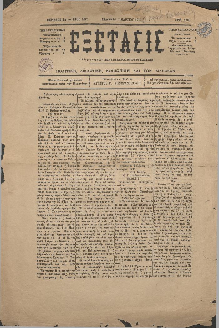Η ΕΞΕΤΑΣΙΣ φύλλο 19/03/1910