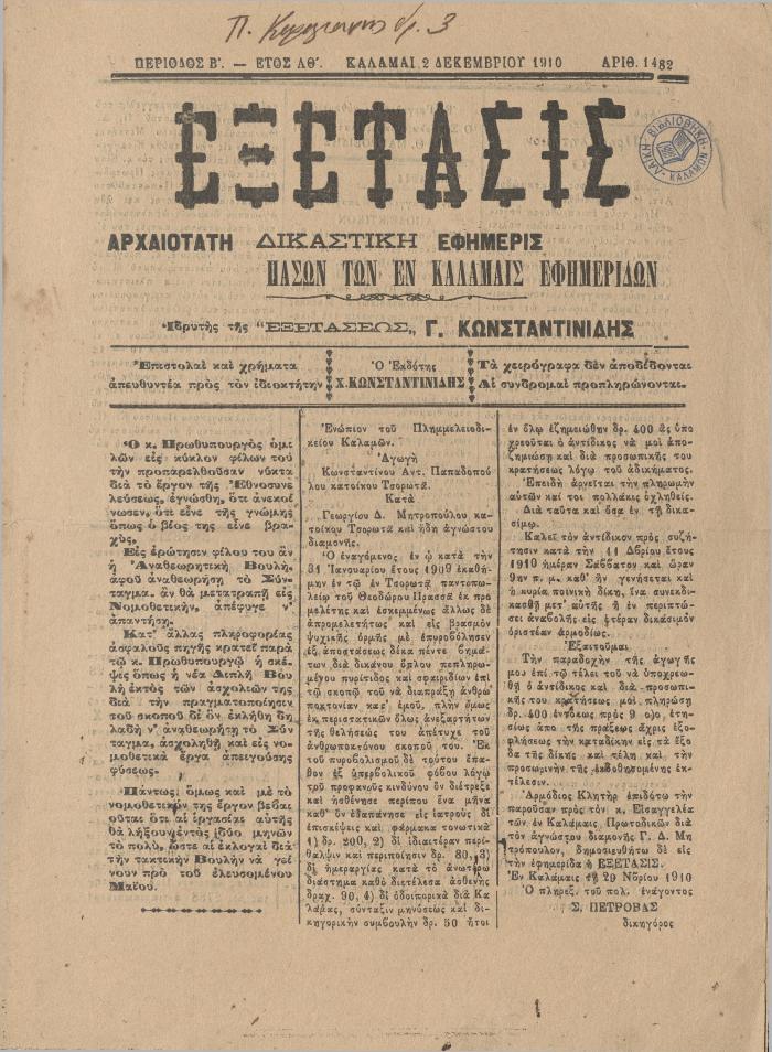 Η ΕΞΕΤΑΣΙΣ φύλλο 02/12/1910