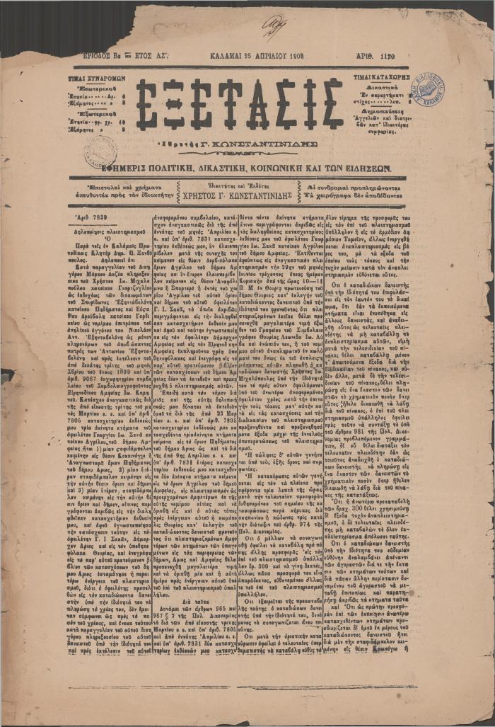 Η ΕΞΕΤΑΣΙΣ φύλλο 25/04/1908