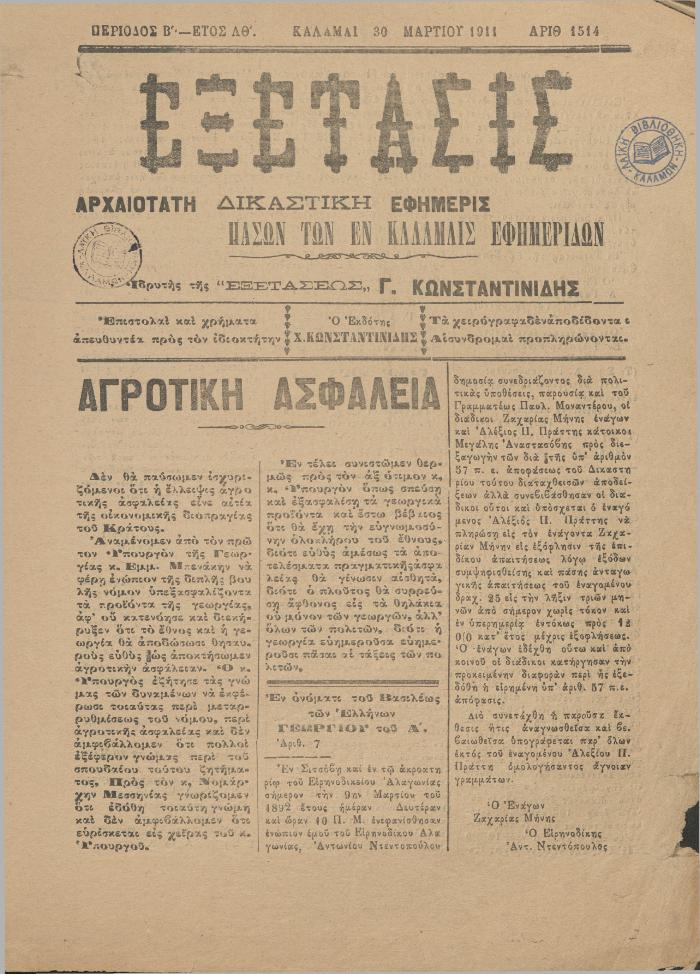 Η ΕΞΕΤΑΣΙΣ φύλλο 30/03/1911