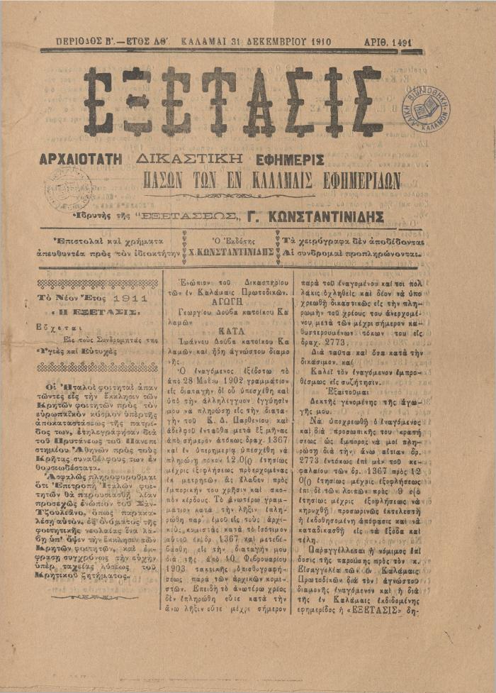 Η ΕΞΕΤΑΣΙΣ φύλλο 31/12/1910