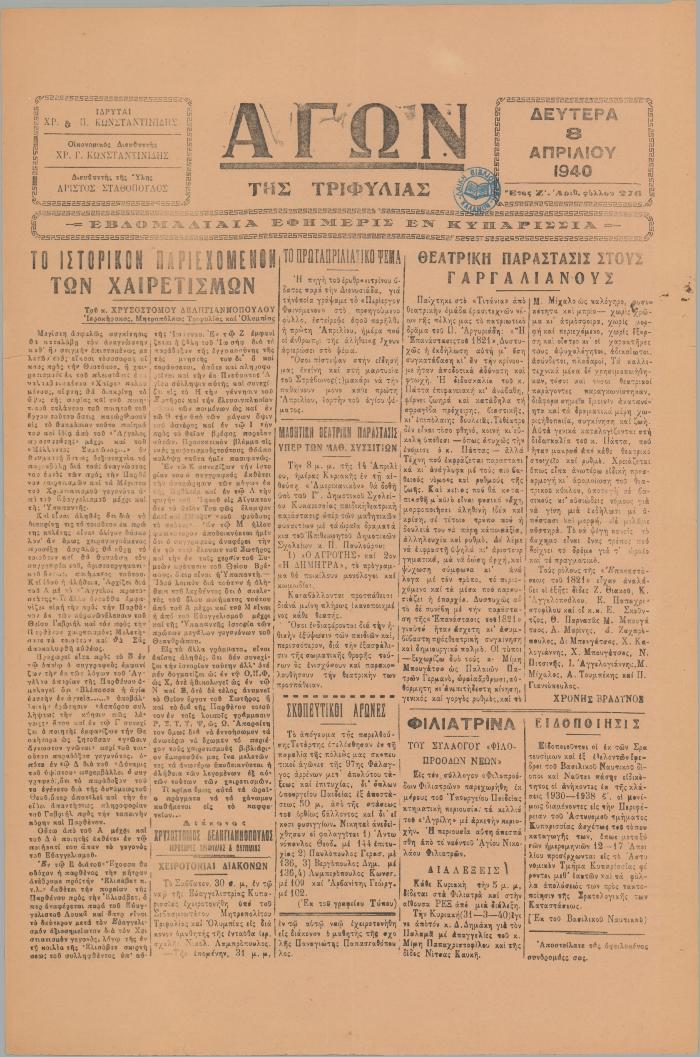 ΑΓΩΝ ΤΗΣ ΤΡΙΦΥΛΙΑΣ φύλλο 08/04/1940