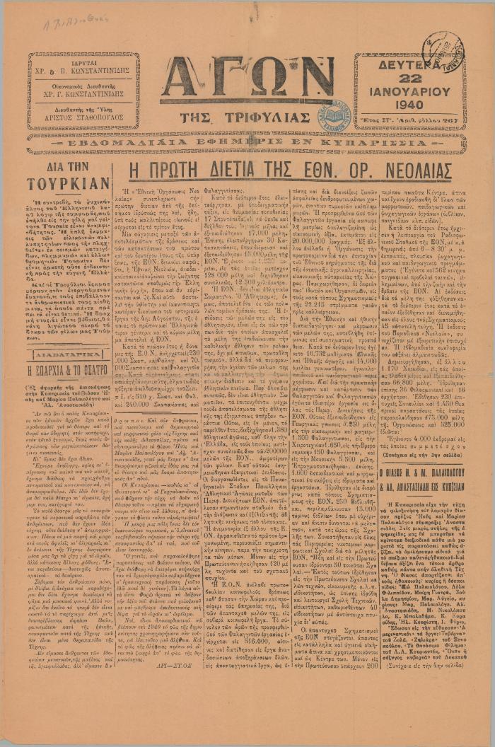 ΑΓΩΝ ΤΗΣ ΤΡΙΦΥΛΙΑΣ φύλλο 22/01/1940