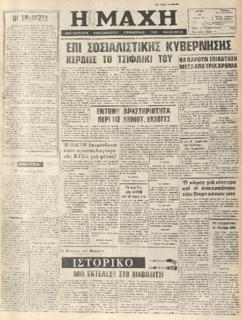 Τίτλος πρωτοσέλιδου άρθρου: ΕΠΙ ΣΟΣΙΑΛΙΣΤΙΚΗΣ ΚΥΒΕΡΝΗΣΙΣ ΚΕΡΔΙΣΕ ΤΟ ΤΣΙΦΛΙΚΙ ΤΟΥ