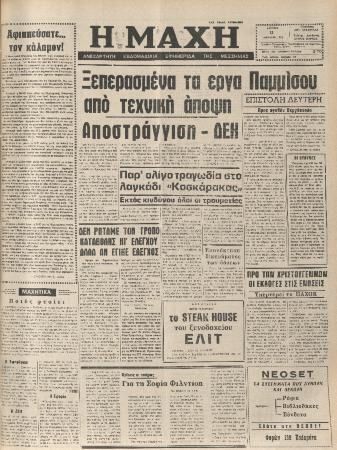 Τίτλος πρωτοσέλιδου άρθρου: Ξεπερασμένα τα έργα Παμμίσου απο τεχνική άποψη - Αποστράγγιση - ΔΕΗ