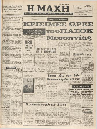 Τίτλος πρωτοσέλιδου άρθρου: ΚΡΙΣΙΜΕΣ ΩΡΕΣ του ΠΑΣΟΚ Μσεσσηνίας